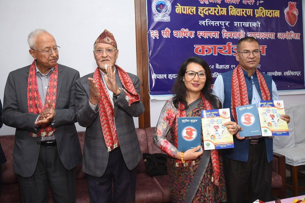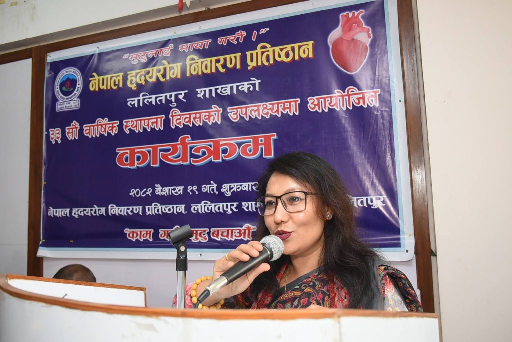 Nepal Heart Foundation, Lalitpur Branch, was inaugurated by the Deputy Mayor of Lalitpur Metropolitan City, Mrs. Manjali Shakya Bajracharya, by lighting a panas. On the same occasion, she also launched the book “Mutu-Sita Mutuharu” (Heart-to-Heart) and the foundation’s souvenir publication. She expressed the municipality’s interest in collaborating with the Nepal Heart Foundation for heart disease prevention.